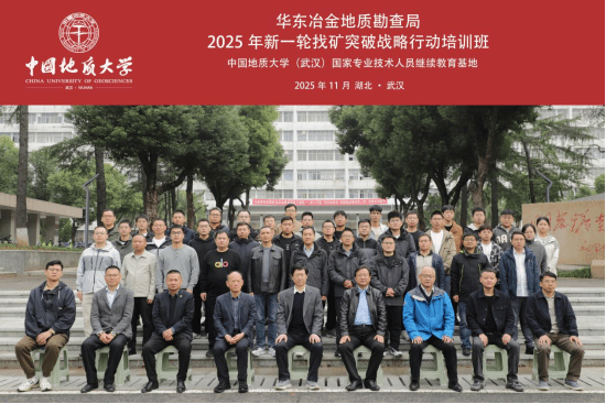 2025年11月9-14日,华东冶金地质勘查局2025年新一轮找矿突破战略行动培训班在中国地质大学(武汉)如期举行。华东冶金地质勘查局局党委委员、副局长朱昆扬、地质矿产处处长陈庆宏、中国地质大学(武汉)校长助理蒋少涌、远程与继续教育学院副院长王兴等嘉宾,以及来自华东冶金地质勘查局的45名学员参加开班式。